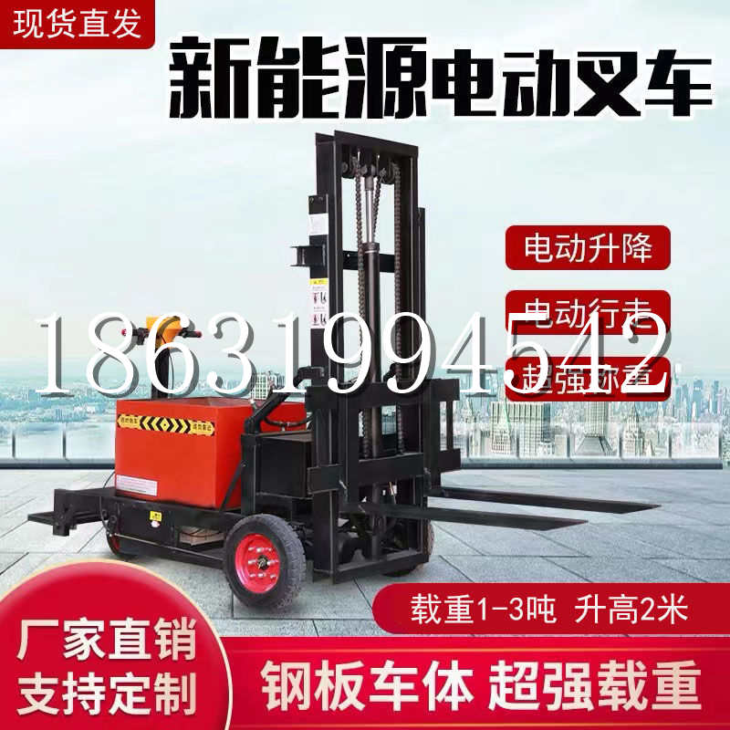 X万丹乡电动叉车新款三轮叉车车载电动叉车电瓶升高车万丹乡电瓶堆高搬运车1吨电动叉车